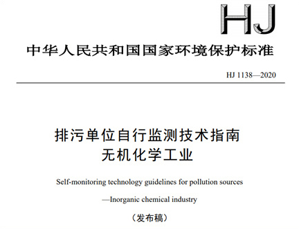 《排污单位自行监测技术指南 无机化学工业》(HJ1138-2020)提出了无机化学工业排污单位自行监测的一般要求、监测方案制定、信息记录和报告的基本内容和要求。该标准适用于无机化学工业排污单位在生产运行阶段对其排放的水、气污染物,噪声以及对其周边环境质量影响开展监测。无机化学工业包括:《国民经济行业分类》(GB/T 4754)中无机酸制造2611、无机碱制造2612、无机盐制造2613及其他基础化学原料制造2619中无机化学工业产品制造。以上述物质作为副产品的其他化工生产排污单位排放的污染物监测不适用于该标准,须执行相应行业的排污单位自行监测技术指南;生产生物氢气、一般气体(电解制氢气除外)、稀有气体、液态空气及压缩空气等无机化学工业排污单位排放的污染物监测参照《排污单位自行监测技术指南 总则》(HJ-819)执行。自备火力发电机组(厂)、配套动力锅炉的自行监测要求按照《排污单位自行监测技术指南 火力发电及锅炉》(HJ-820)执行。