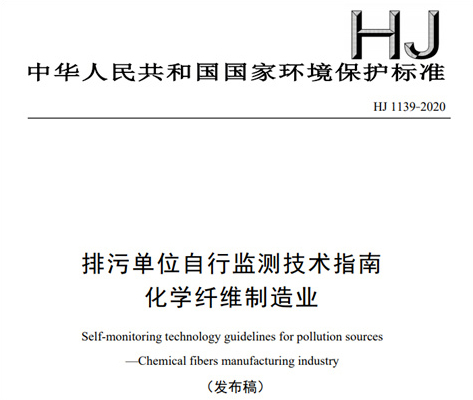 《排污单位自行监测技术指南 化学纤维制造业》(HJ1139-2020)提出了化学纤维制造行业排污单位自行监测的一般要求、监测方案制定、信息记录和报告的基本内容和要求。该标准适用于化学纤维制造业排污单位在生产运行阶段对其排放的水、气污染物、噪声以及对周边环境质量影响开展自行监测。醋酯纤维制造中的醋酐产污设施和排放口的自行监测要求按照《排污单位自行监测技术指南 石油化学工业》(HJ-947)执行。排放工业废水、废气或有毒有害污染物的化学纤维制造业排污单位的其他产污设施和排放口的自行监测要求按照《排污单位自行监测技术指南 总则》(HJ-819)执行。自备火力发电机组(厂)、配套动力锅炉的自行监测要求按照《排污单位自行监测技术指南 火力发电及锅炉》(HJ-820)执行。